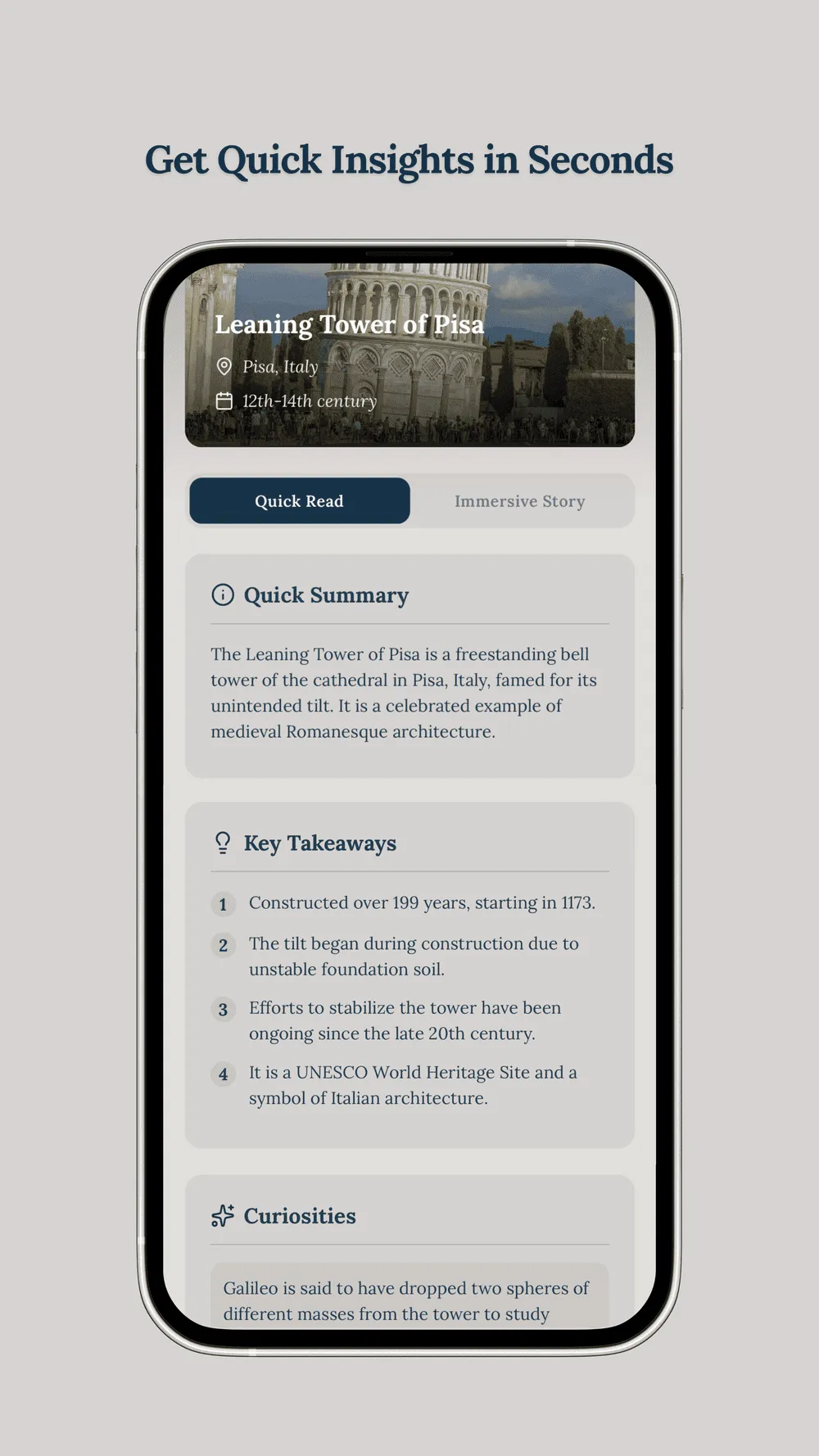"Perfect for exploring European cities! The AI instantly recognizes monuments and gives great historical context. My travel photos now tell stories."