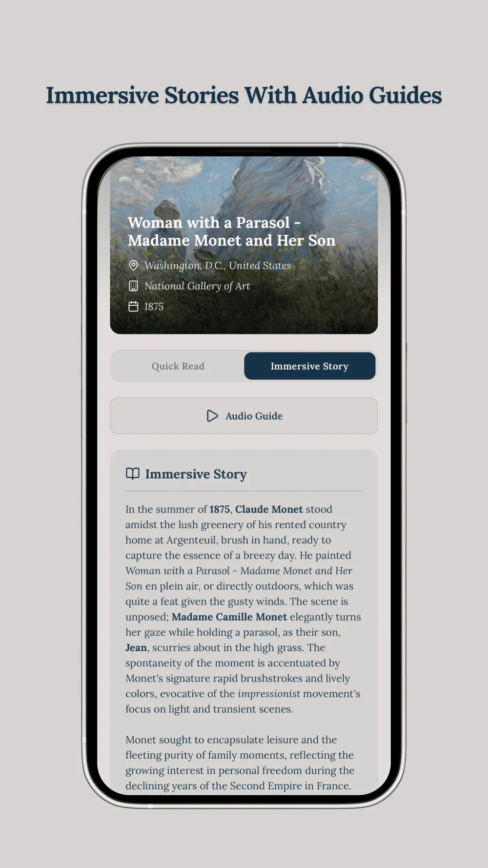 Advanced computer vision technology identifies monuments and museum objects, providing detailed historical context and cultural significance.